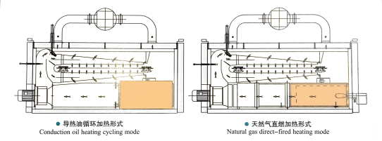 Heating mode:Steam heating, conduction oil heating, gas heating or diesel direct combustion